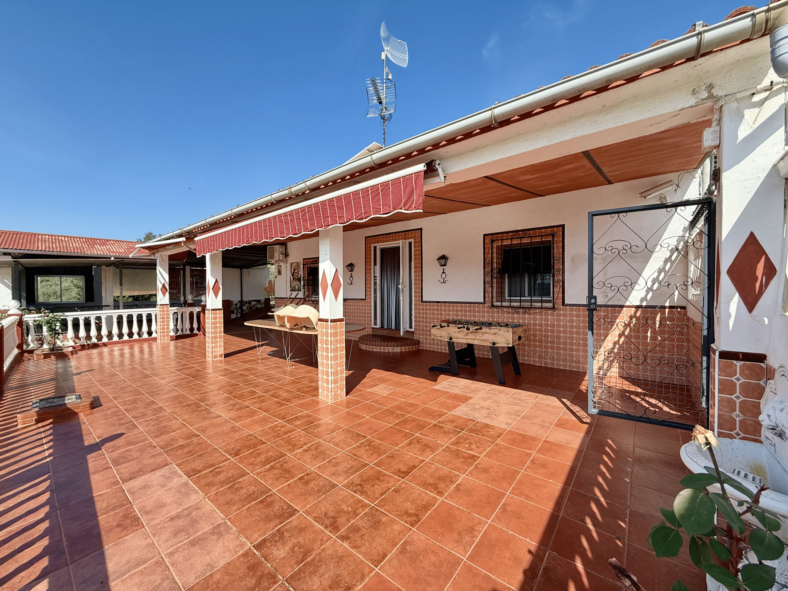 La finca dispone de zona de parkingárea de barbacoa y un chalet con zona exterior techada, perfecta para colocar una mesa grande y disfrutar de comidas o cenas al aire libre en cualquier época del año.